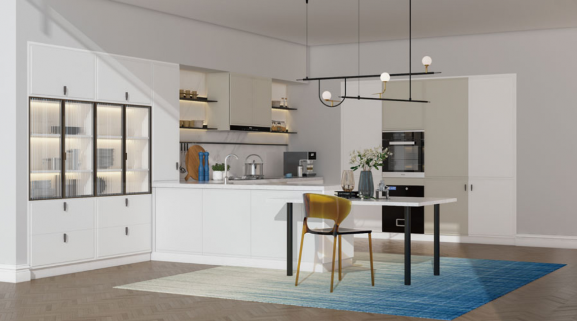 Clients can select from traditional or modern kitchen china cabinet styles. Traditional cabinets often feature wood textures, decorative trims, and traditional handles, creating a cozy and elegant atmosphere. Modern cabinets focus on minimalism, sleek lines, and practical storage solutions. SNIMAY provides options for custom kitchen cabinet designs that align with the overall style of the home or commercial project, making customization straightforward and precise.